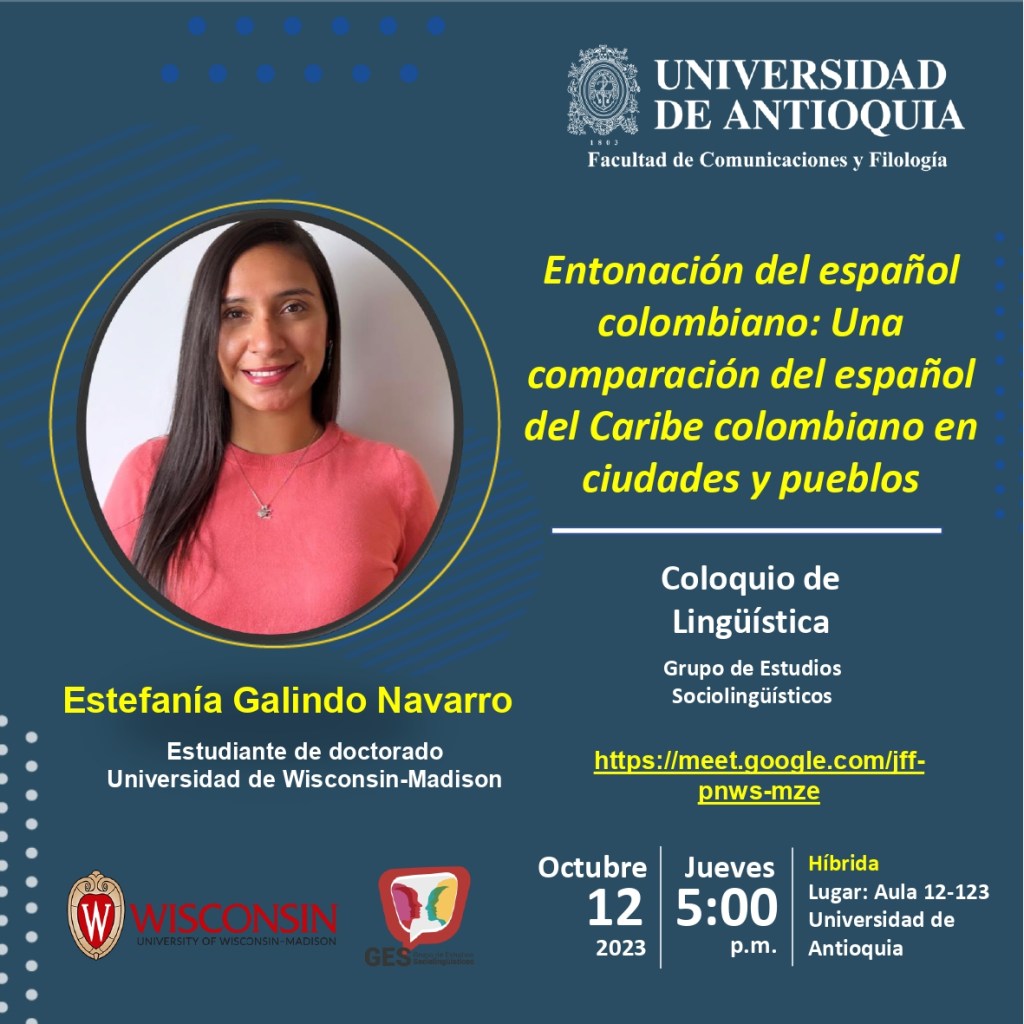 Galindo-Navarro, Estefanía “Colombian Spanish Intonation: A comparison between Colombian Caribbean Spanish intonation in cities and towns”. Coloquio de Lingüistica, Sociolinguistic study group, Universidad de Antioquia. (Medellín, Antioquia, Colombia) [virtual – Oral presentation]