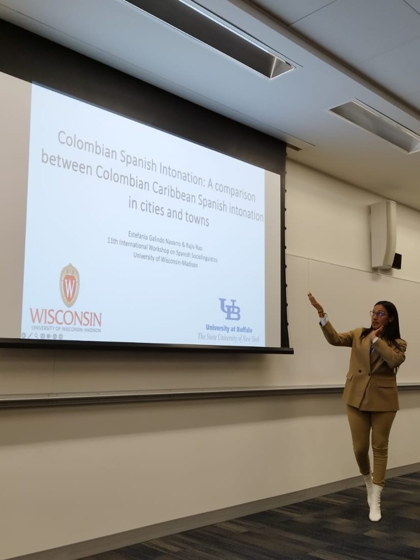 Galindo-Navarro, Estefanía “Colombian Spanish Intonation: A comparison between Colombian Caribbean Spanish intonation in cities and towns”. 17th Annual Kaleidoscope, Navigating Shifts in Space, Time and Topics, Department of Spanish and Portuguese, University of Wisconsin-Madison. (Madison, WI, United States) [Oral presentation]