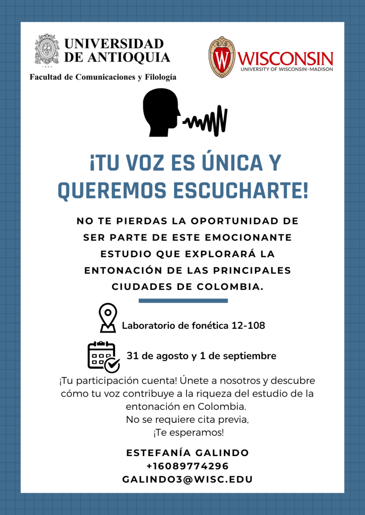 Through this research, I aim to contribute to the fields of Spanish linguistics, intonational theory, sociolinguistics, and language variation and change. Additionally, I hope to create spaces where Colombians can learn about the distinctive features of their speech and understand the social dynamics behind linguistic variation—an important step toward embracing and valuing our country’s rich linguistic diversity.